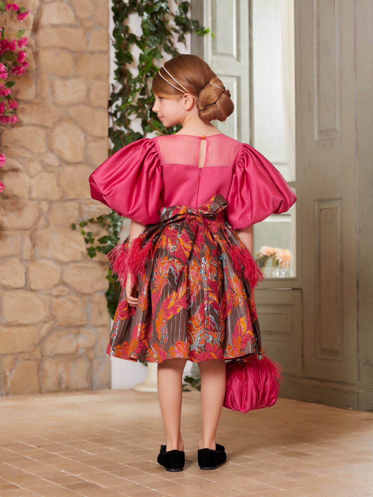 Özel Şık Tasarım Fuchsia Elbise Çanta ve Saç Aksesuar Dahil