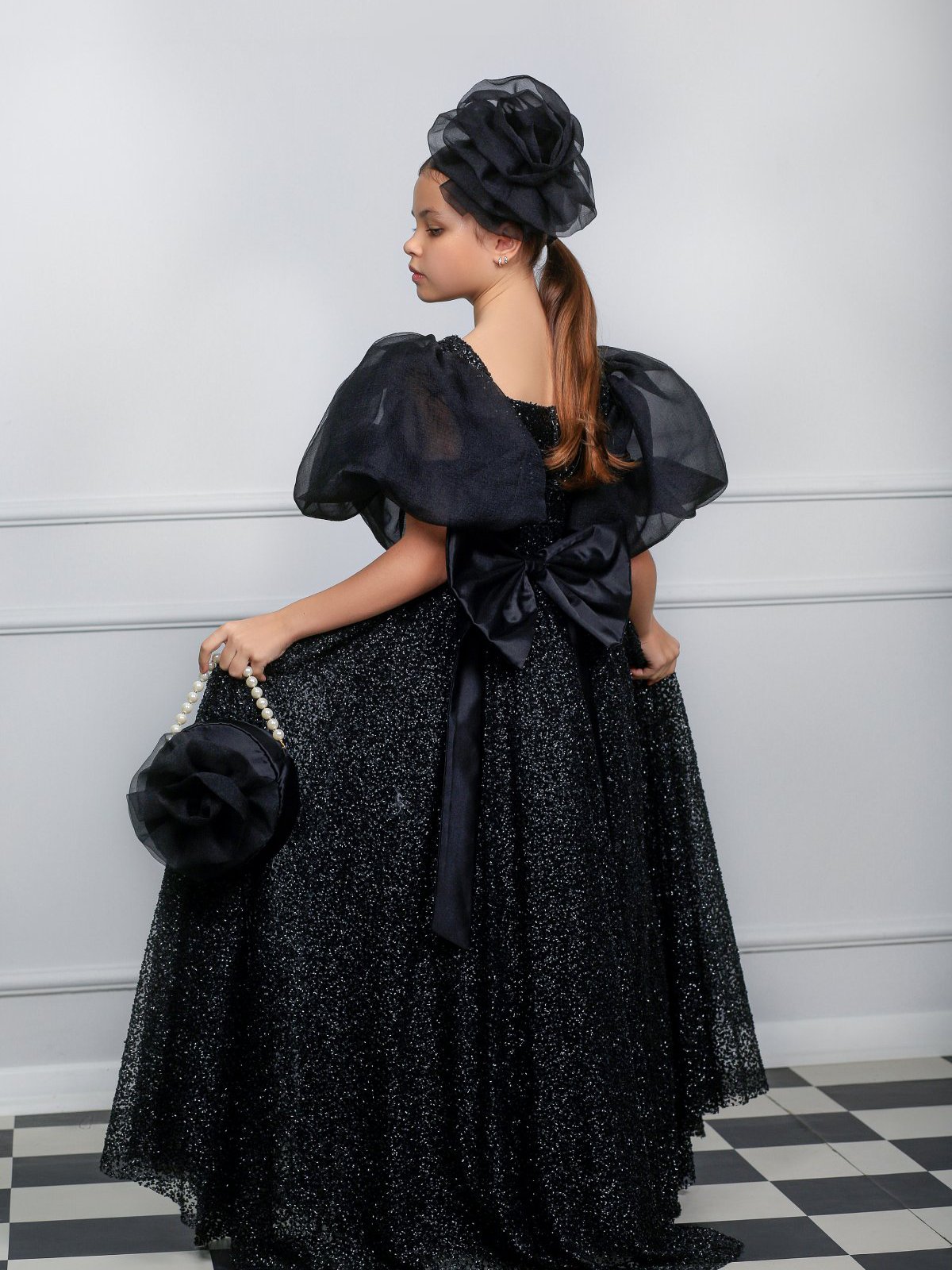 Özel Şık Tasarım Uzun Siyah Elbise Çanta ve Saç Aksesuar Dahil