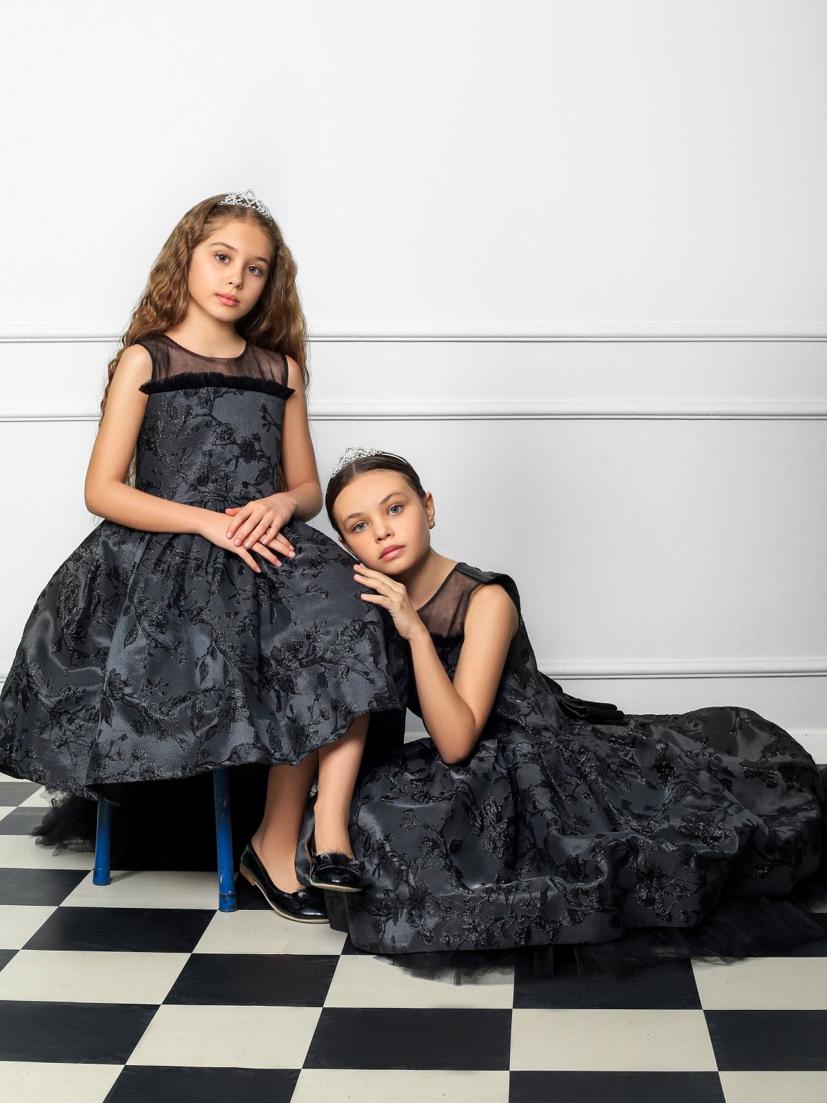 Siyah Çiçek Desenli Ön Kısa Arka Uzun Elbise