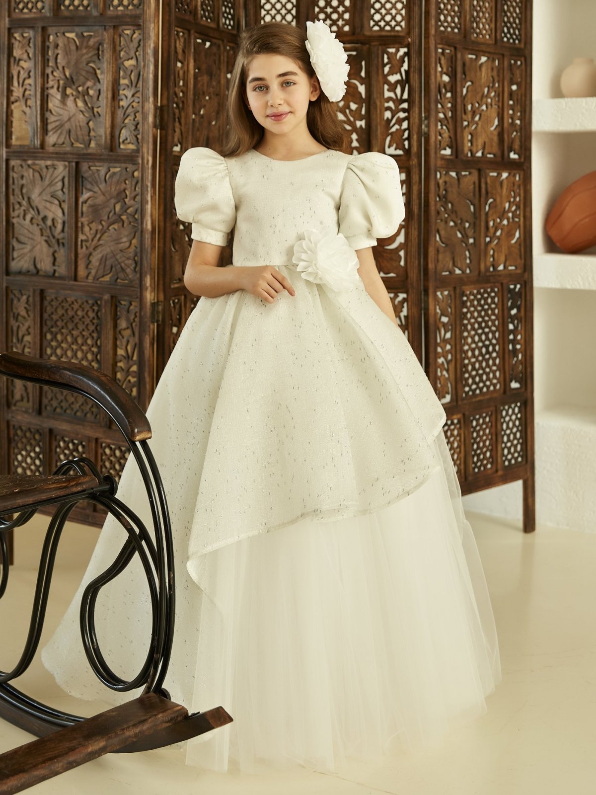 Çicek Aksesuarlı Uzun Beyaz Elbise