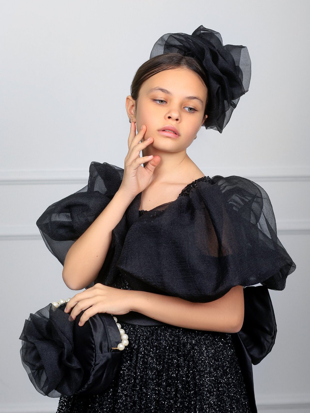 Özel Şık Tasarım Uzun Siyah Elbise Çanta ve Saç Aksesuar Dahil