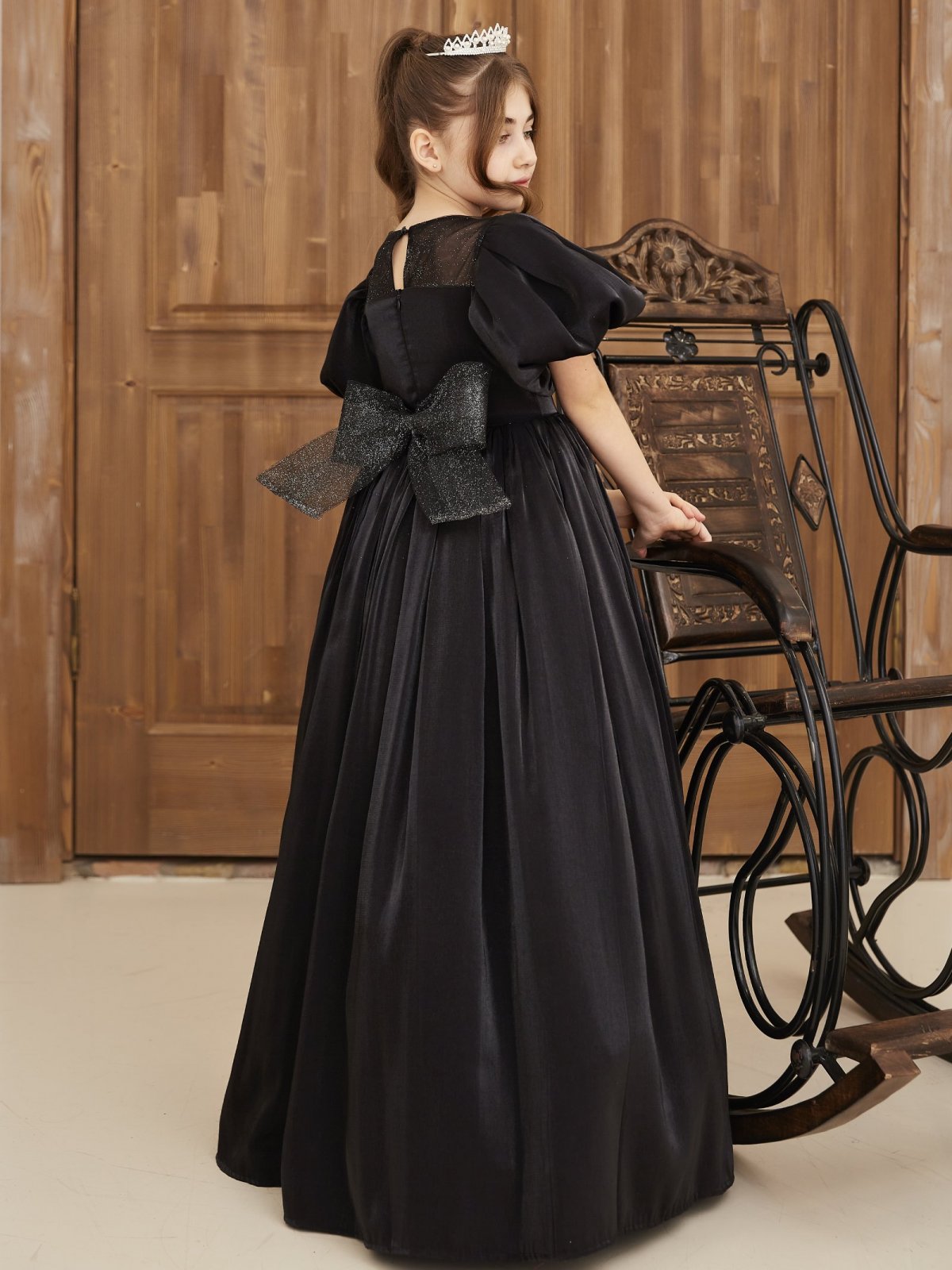 Kız Çocuk Siyah Uzun Kabarık Abiye Elbise Taç Dahil