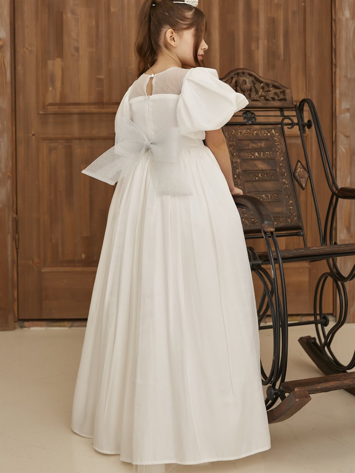 Kız Çocuk Beyaz Uzun Kabarık Abiye Elbise Taç Dahil